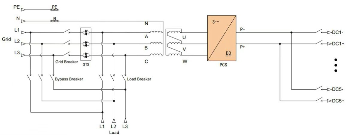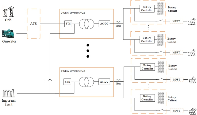 1. Koormustel üle 500 kW on soovitatav kasutada suure võimsusega 500 kW ühe üksuse energiasalvestiga inverterit, mis on võimeline toetama kuni nelja paralleelühenduste komplekti, saavutades koguvõimsuse 2 MW;